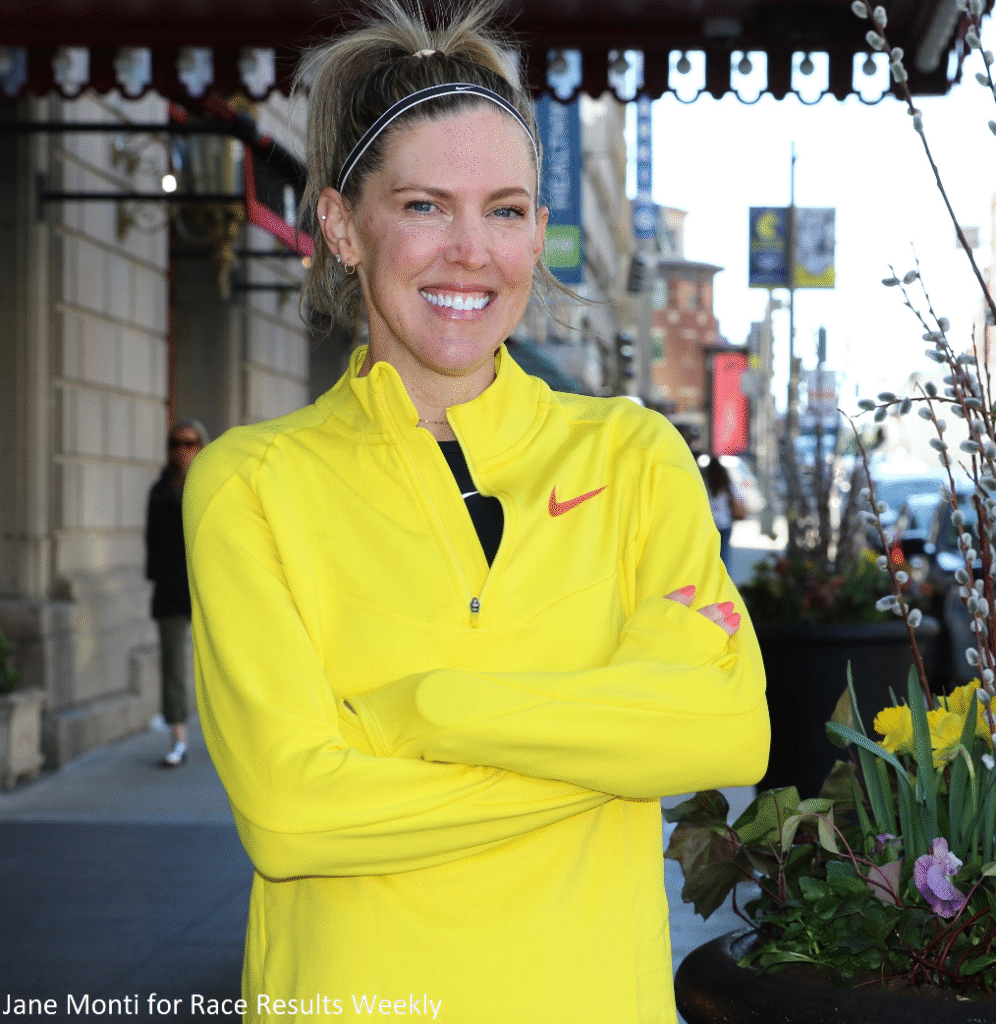 PHOTO: Keira D’Amato in Back Bay in advance of the 2025 Boston Marathon (photo by Jane Monti for Race Results Weekly)