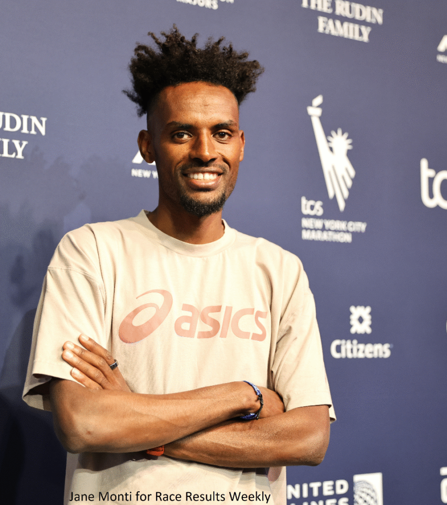 PHOTO: Biya Simbassa in advance of the 2025 TCS New York City Marathon (photo by Jane Monti for Race Results Weekly)