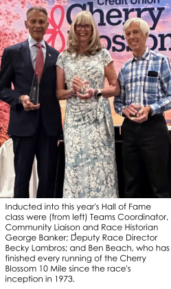Gar Williams, Class of 2023, cofounder of the Cherry Blossom Run Jeff Darman, Class of 2023, former Race Director Irv Newman, Class of 2023, former Cherry Blossom President Bill Brooks, Class of 2024, a long-time Credit Union Miracle Day Board Member Ed Murray, Class of 2024, race co-director from 1974-1982 Phil Stewart, Class of 2024, Event Director from 1988 to 2026 Anna Berdahl, Class of 2025, longtime volunteer and Founder of the Kids Run Bill Rodgers, Class of 2025, U.S. Olympian and four-time winner of the CUCB